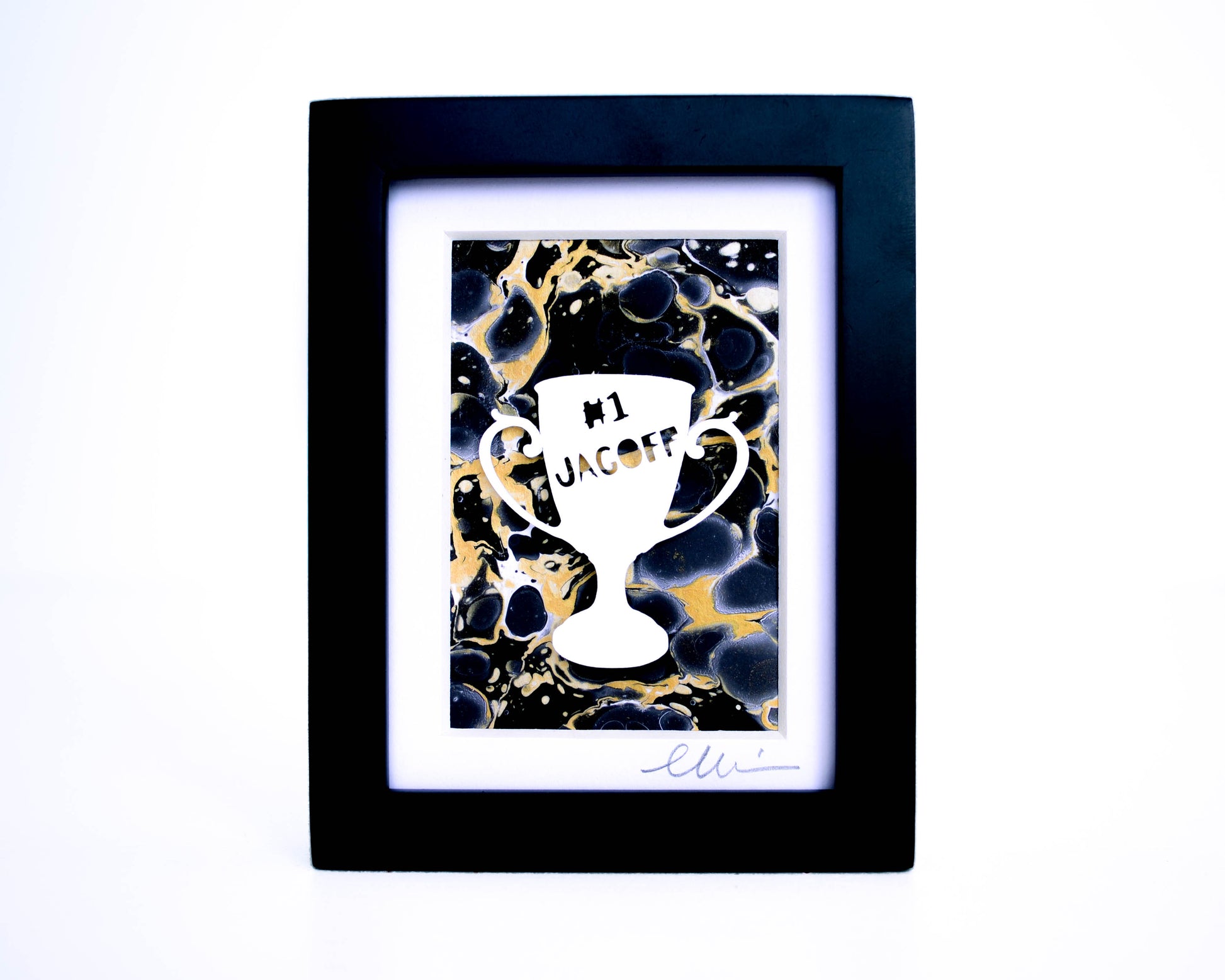 Each original signed piece comes in a solid black wood gallery frame with glass.