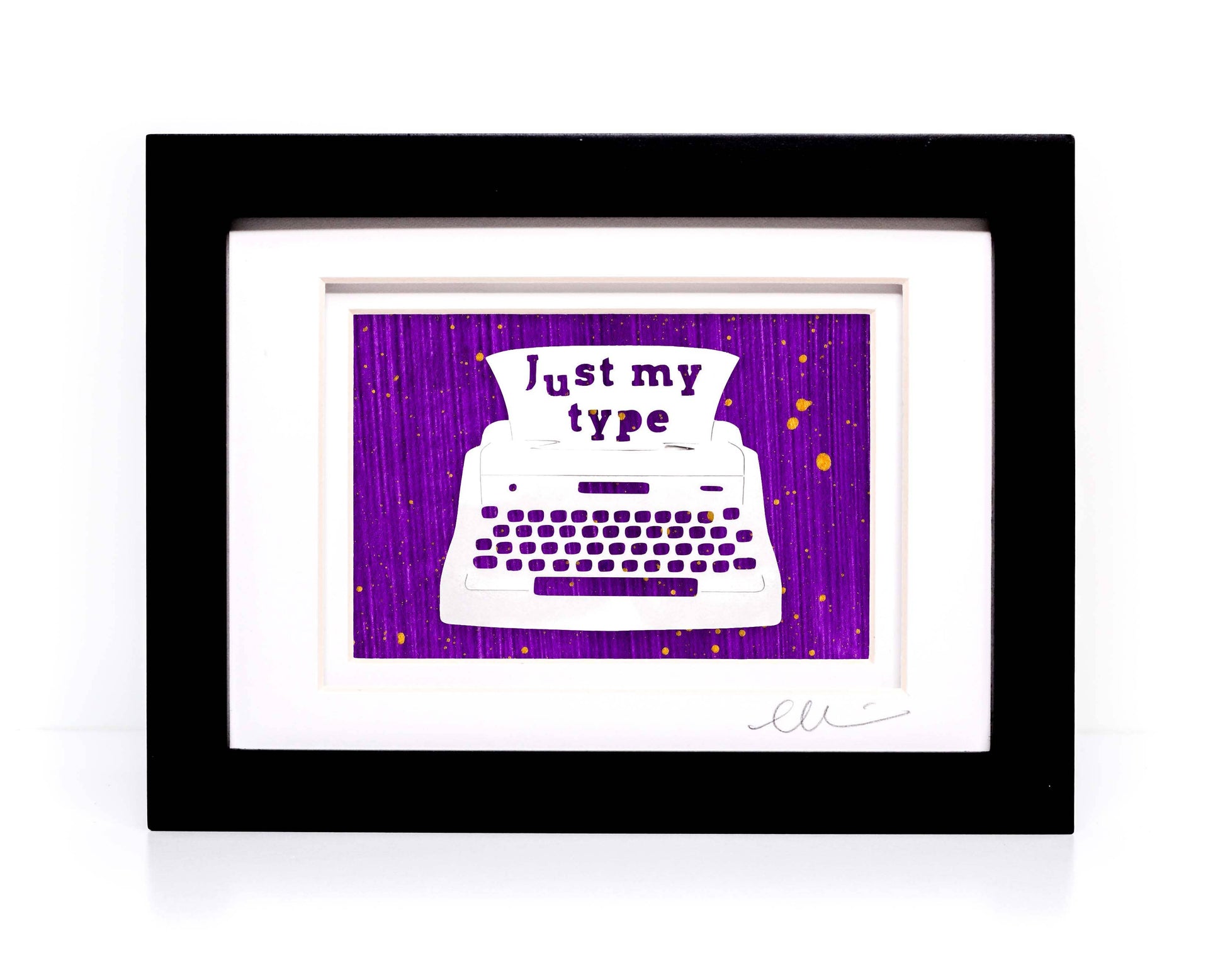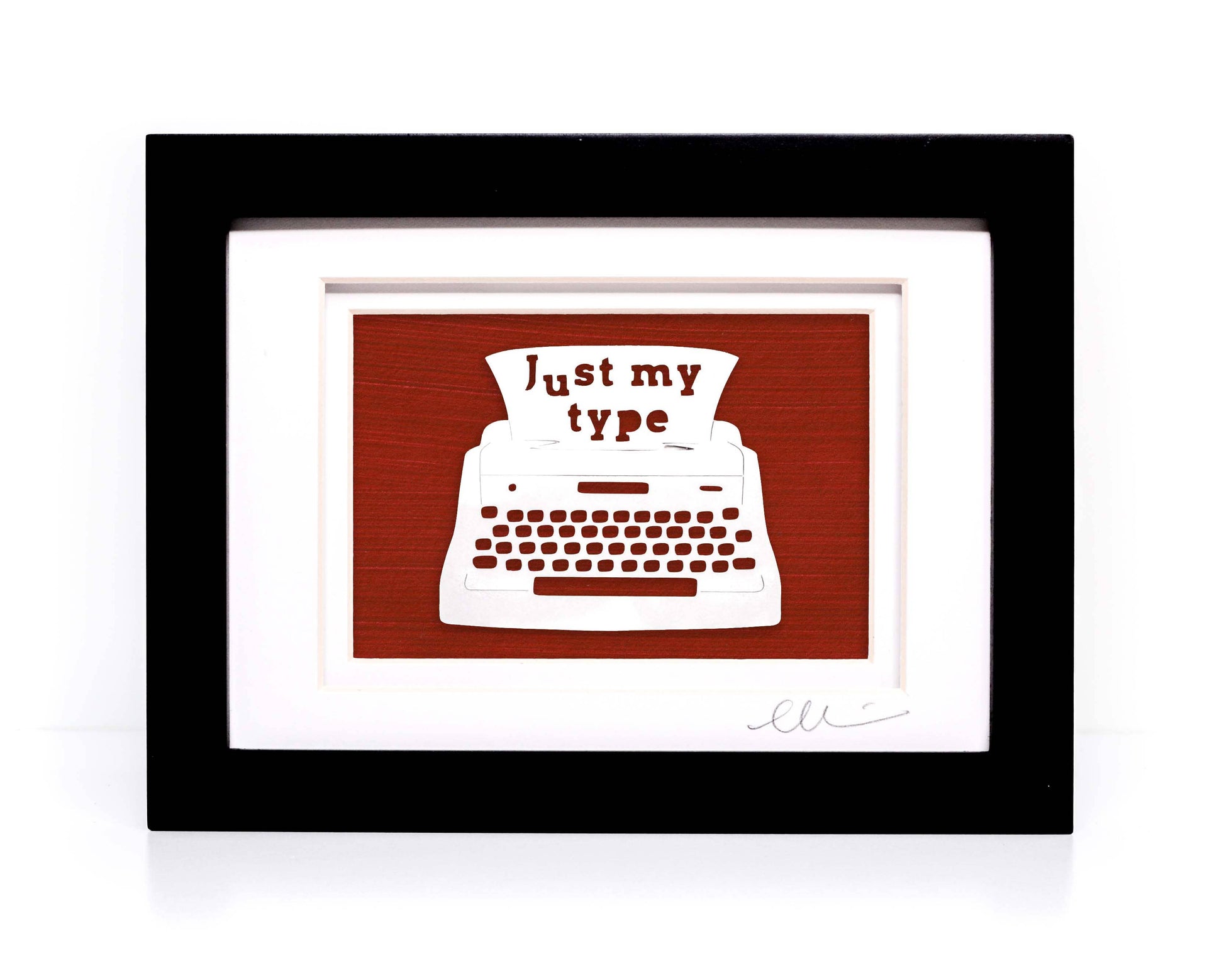Each crisp, white papercut is set off by a “color me happy” one-of-a-kind background made from recycled paper or the artist’s own hand-marbled paper and acrylic paintings. Then signed, matted, and framed.