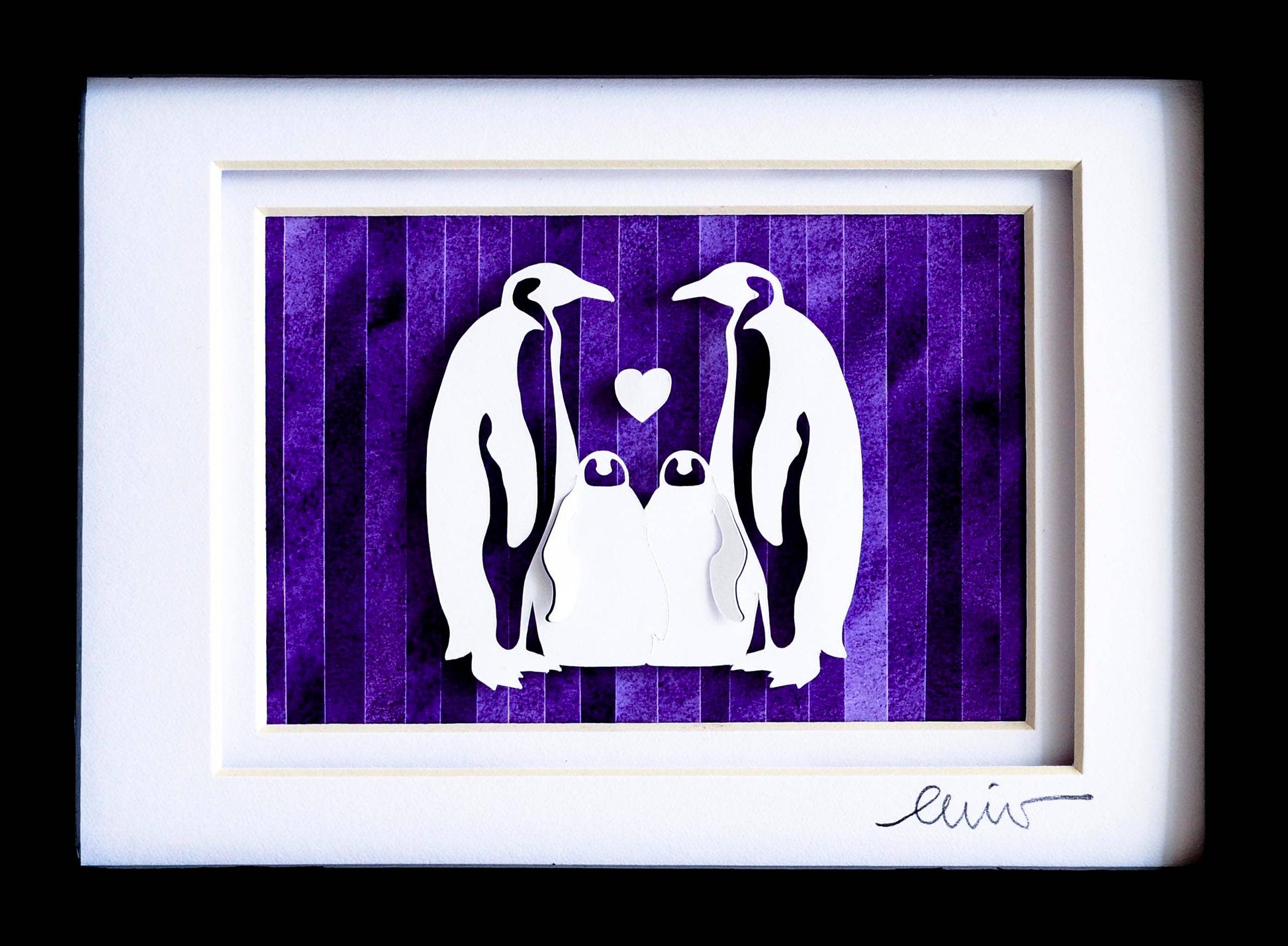 Each crisp, white papercut is set off by a “color me happy” one-of-a-kind background made from recycled paper or the artist’s own hand-marbled paper and acrylic paintings. Then signed, matted, and framed.