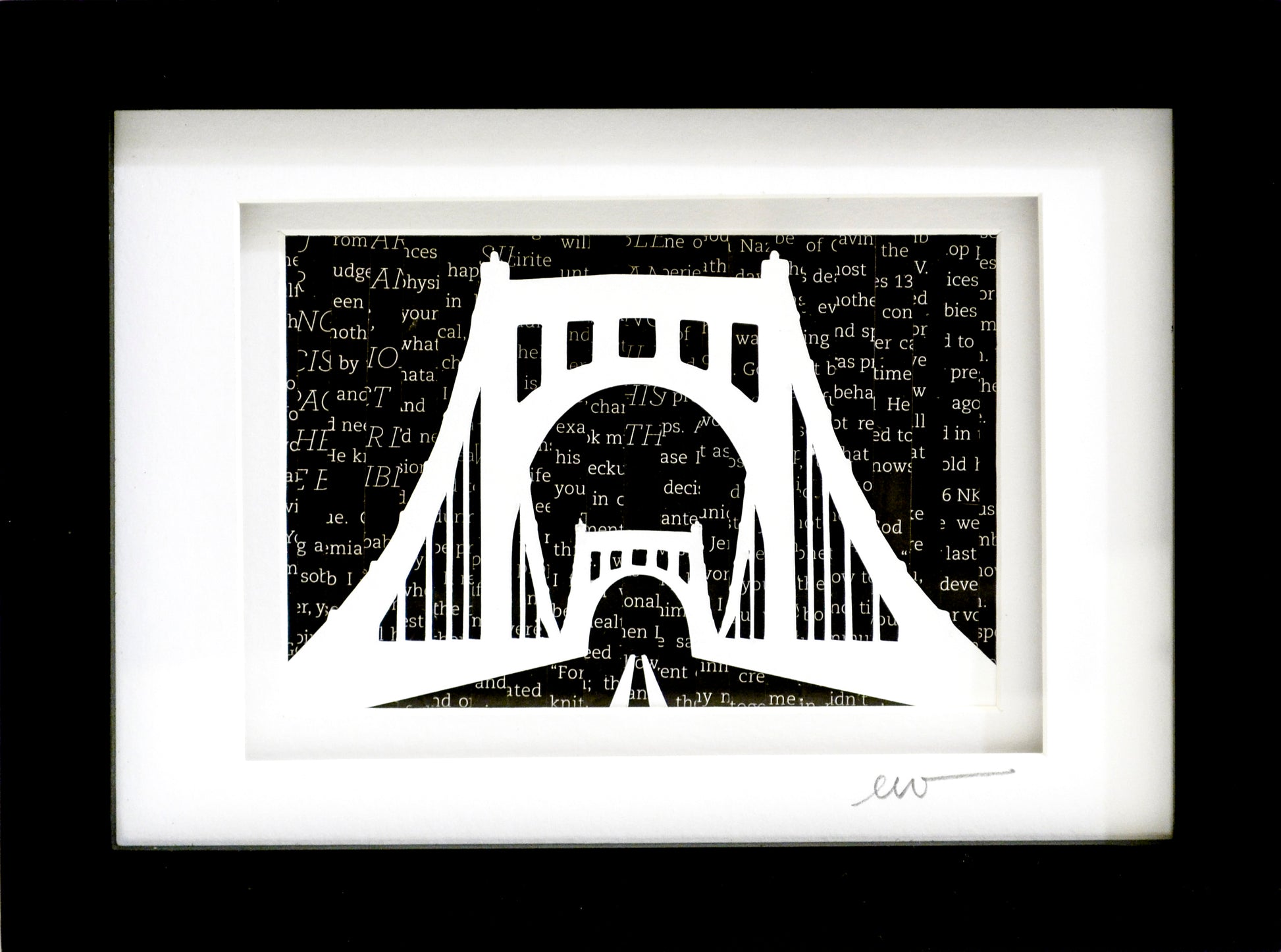 Each crisp, white papercut is set off by a “color me happy” one-of-a-kind background made from recycled paper or the artist’s own hand-marbled paper and acrylic paintings. Then signed, matted, and framed.
